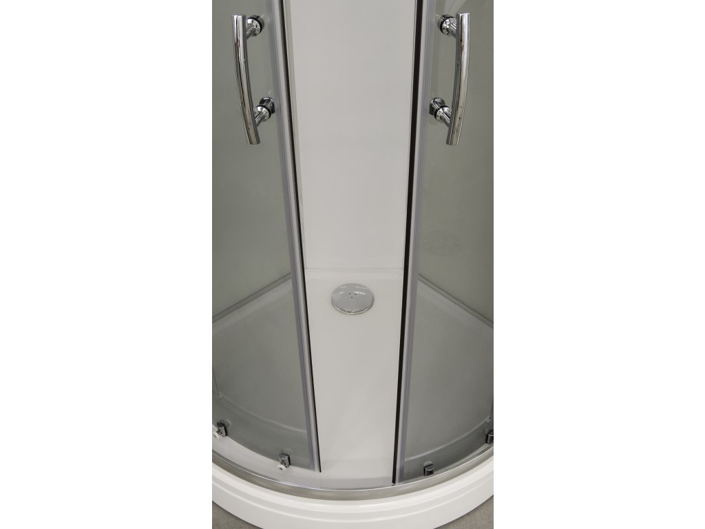 Die Komplettdusche BRILIANT 90 x 90cm Modell 1 clear, Viertelkreis mit Schiebetüren aus eigener Produktion, zeichnet sich durch hervorragende technische Verarbeitung und sorgfältige Verarbeitung aller Komponenten und Materialien aus.